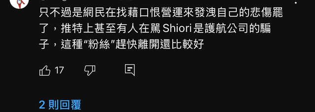 : 只不過是網民在找藉口恨營運來發洩自己的悲傷罷 了,推特上甚至有人在罵 Shiori是護航