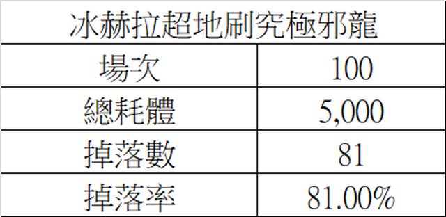 標題[統計] 冰赫拉超地刷究極邪龍 100場掉落統計