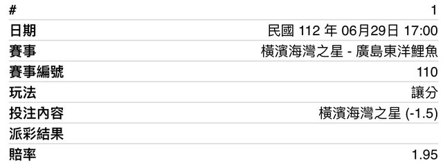 ※ 文章網址: https://www.ptt-club.com.tw/SportLottery/M.1688022418.A.67E