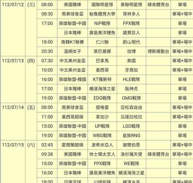 標題[情報] 112-07-12單場場中