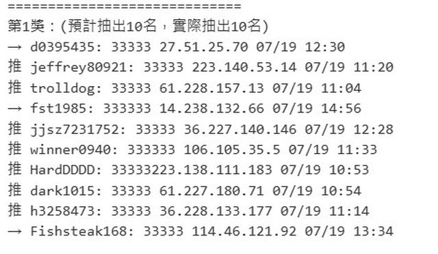 恭喜中獎者