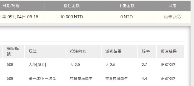 → strawbee: 第二張還在等賠率啊 少贏一半 42.77.65.72 09/04 08:08