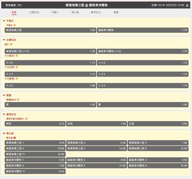 推 odysseyy: 橫濱廣島全場5.5大 羅德2.5大 42.74.89.190 10/15 10:31