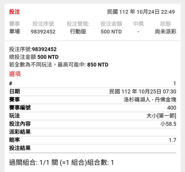 ※ 文章網址: https://www.ptt-club.com.tw/SportLottery/M.1698159445.A.FD1
