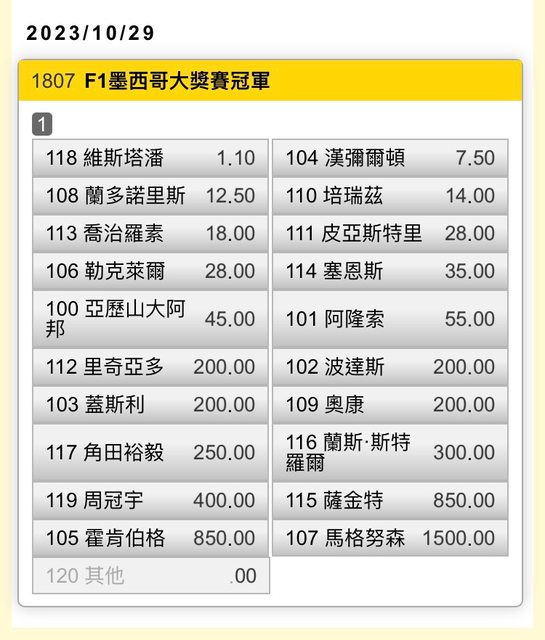 標題[F1]「天九牌」2023墨西哥大獎賽