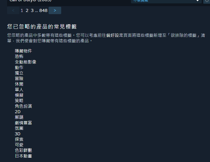 若用steam程式開頁面可以按ctrl+F搜尋想要的標籤,再點「瀏覽所有XX項」