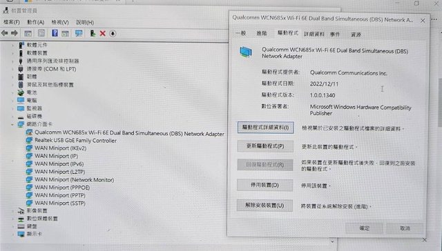 完全無法使用無線裝置(只能使用有線網路,無線網路連顯示都沒有),從裝置管理員看