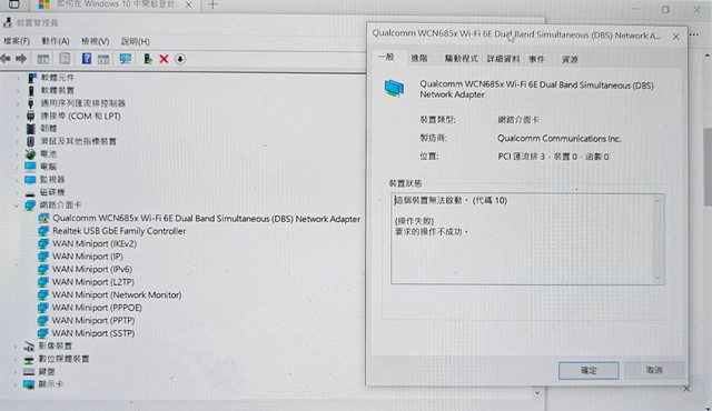 無線網路卡的問題如附圖所顯示,想請教有經驗的朋友有什麼辦法可以解決此問題?謝謝