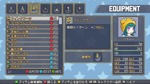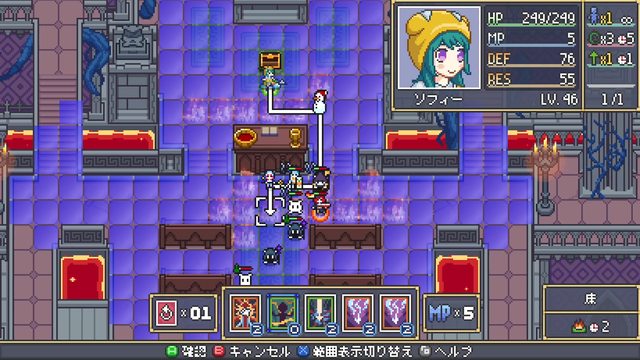 角色配裝、調整卡牌。本作角色間可以交換卡牌,後期TP多到用不完,牌組很容易就能成