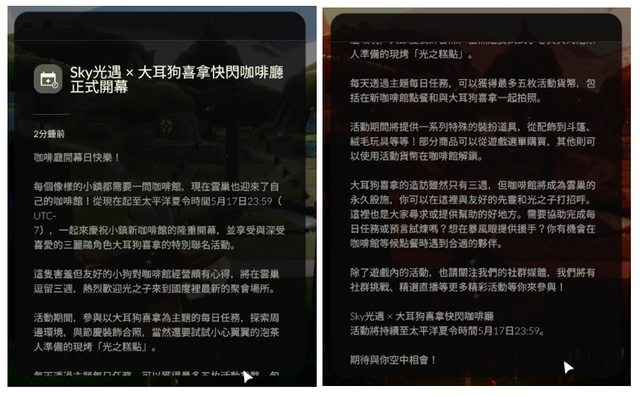 最近《Sky光遇》與三麗鷗「大耳狗喜拿」推出了聯動合作,