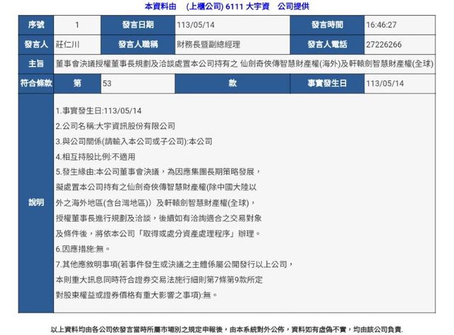 → pitapon: 電子零件的公司了(誤) 雖然作為老粉有點難接受,但武俠+ 05/16 23:35