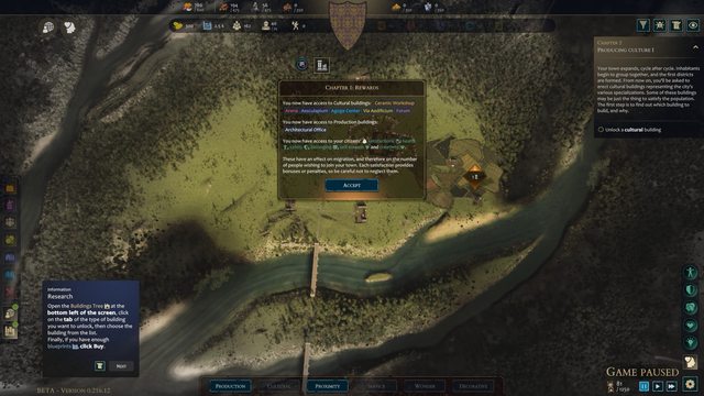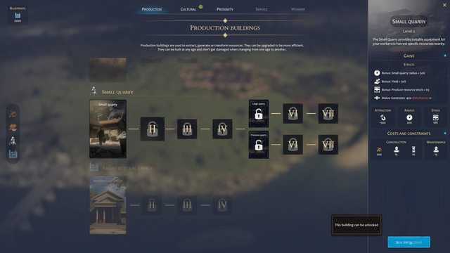 升級到新時代的建築,但要先隨著遊戲引導的進度,完成後才會啟用建築,並使用藍圖解