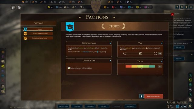 每回合提供玩家金錢,以及慢慢累積對你的信任。這些特定類型的派系會影響到後續你想