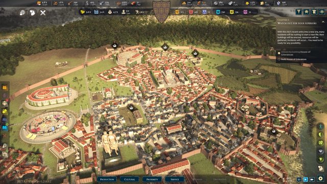 隨著人口與資源的累積,生產力建築與市鎮中心都可以升級,我們每個階段的最終目標是