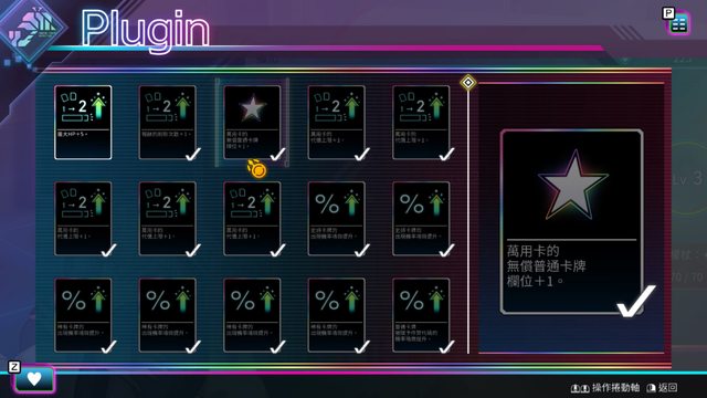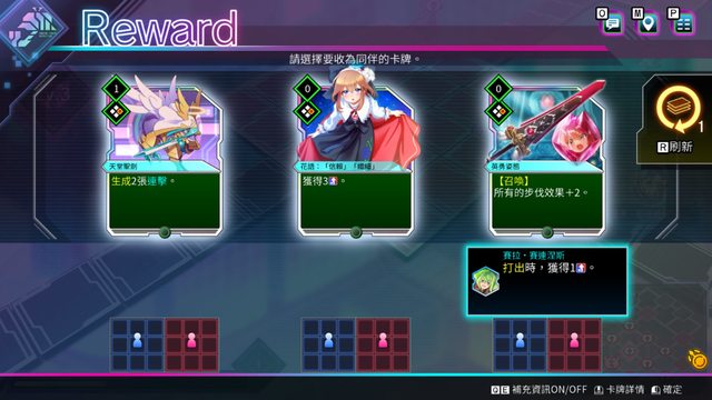 可攜帶的萬用卡數量和稀有度有限制,只能用打完迷宮累積的獎勵點數強化。
