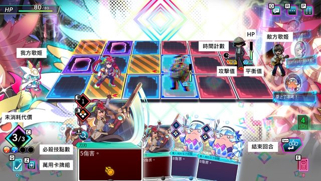 主角參數只有HP(卡牌有其它附加Buff)敵人參數有HP、攻擊值、平衡值、時間計數,