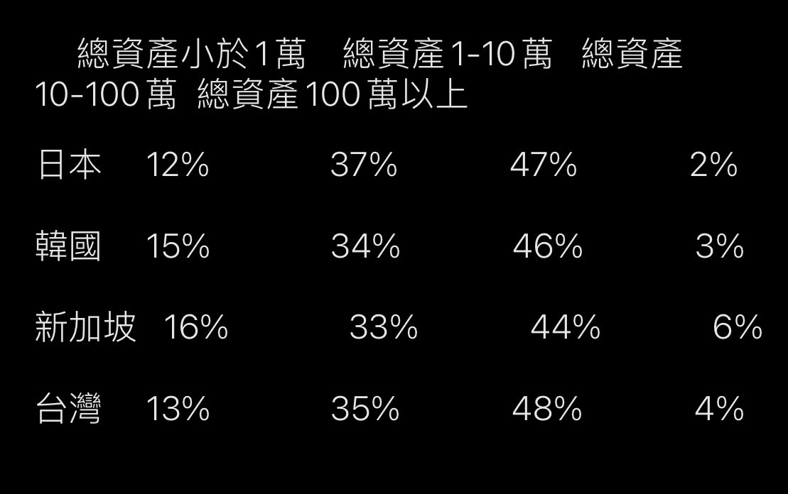 你根本還沒算入勞退專戶的錢啊 如果計算了 新加坡就100萬以下的族群 資產就大噴發了