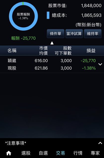 今早賣出後一舉轉正,但因不想買844股湊到一張,就直接買3張,然後賣掉之前高成本的15