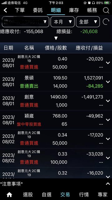 8月一度帳上大賠30萬+已實現的-10萬