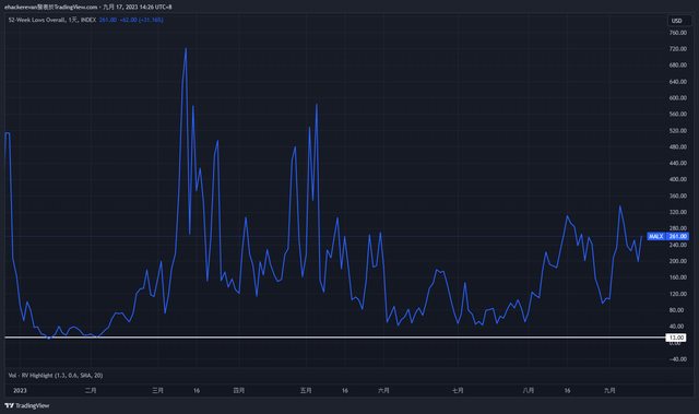 4. 52週新高跟新低比例呈現相反走勢
