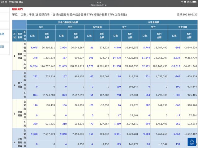 查詢臺股期貨的三大法人多空交易口數與未平倉餘額(序號1),