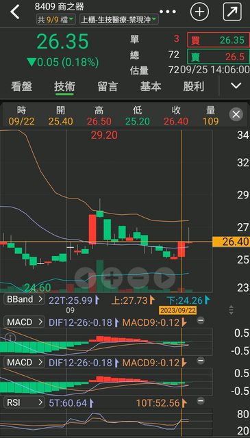 1. 標的:8409 商之器 2. 分類:討論 3. 分析/正文: 上週五KD在低檔黃金交叉,而且有過前量(9/21 36 9/22 109) https://i.imgur.com/2jE2j7G.jpeg