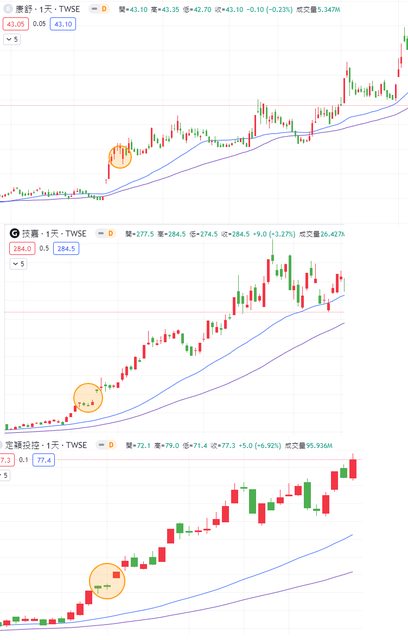 最強勢的先三根跳空一字鎖+出貨大綠棒+三根綠洗盤+今日漲停 其實可以注意到 『短天期跟長天期均線開口打開』 每個飆股都是從這裡開始的 https://i.imgur.com/3ANyZ8T.png
