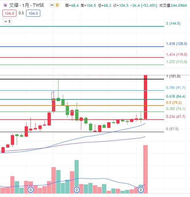 前高101 前低57 一倍等幅測距 停利先抓144 創高無壓 萬里無雲 94追起來 4. 進退場機制: 進場94-110 停利144-170 停損-人走茶涼 跌破上升季線時 -- ※ 發信站: 批踢踢實業坊(www.ptt-club.com.tw), 來自: 125.227.78.36 (臺灣) ※ 文章網址: https://www.ptt-club.com.tw/Stock/M.1695810630.A.248