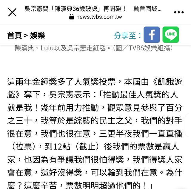 → tinmar: 大熱門得獎是評審決定 又不是三立10/20 22:22