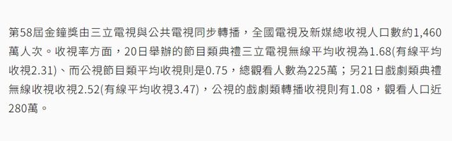 頒獎典禮 (三立都會) 1.68 (上屆 1.76)