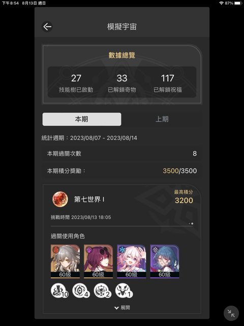 任務還有現階段模擬宇宙能打的都清空了