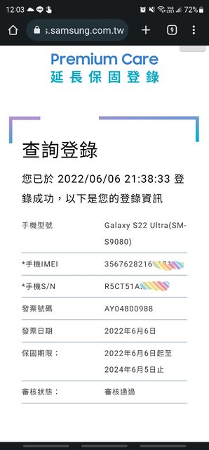 3.因換新機IMEI碼會與原盒不相同,故附上購三星直營買發票、原廠盒裝、維修證明以利