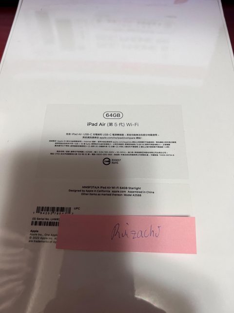 欲售物品:ipad air 5 64G wifi 星光色
