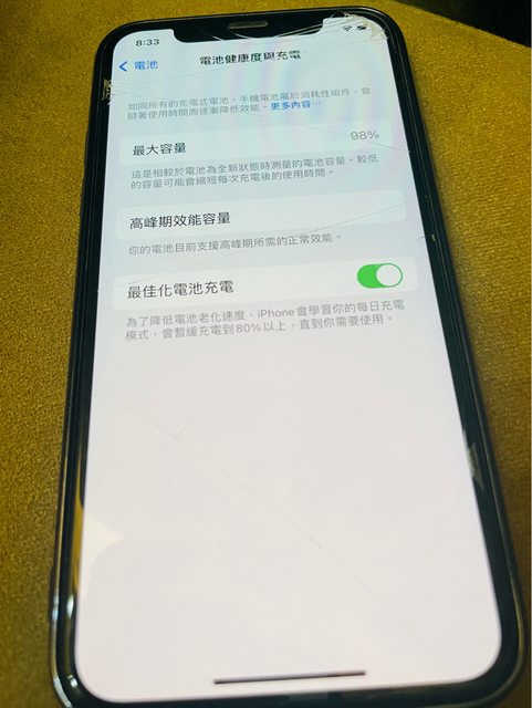 物品狀況:九成新以上,螢幕無刮傷只是保護貼裂痕,功能正常,電池健康度98%