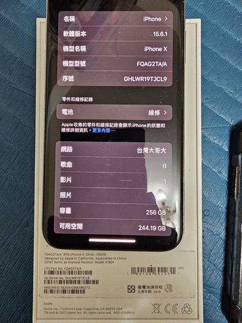 欲售物品:iPhoneX 256GB 銀