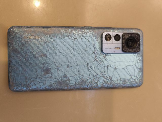 物品狀況:騎路上手機掉出被車輾過,背蓋87%破裂,正面螢幕完全正常沒受傷裂痕刮傷,