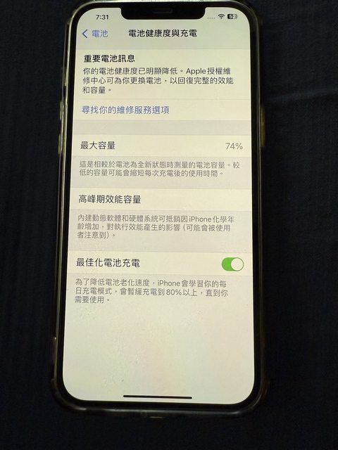 手機無維修,電池健康度74%,沒換過電池