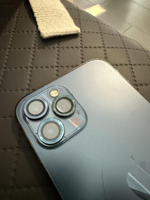 有破,用保護殼看不出來也不影響使用。鏡頭保護貼有一個需更換。