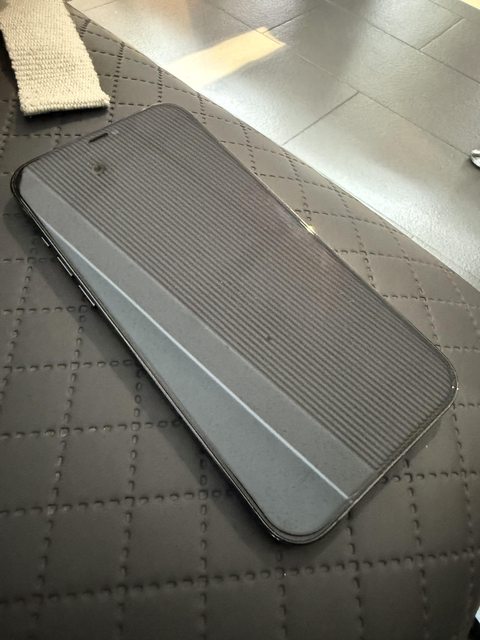 牌保護殼。手機無送修過,螢幕電池皆為原廠。電池79%。背板用犀牛盾無後殼時壓到異物