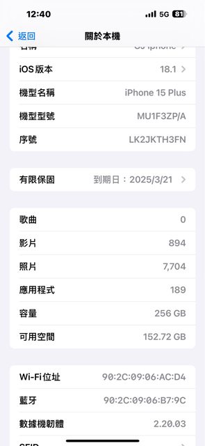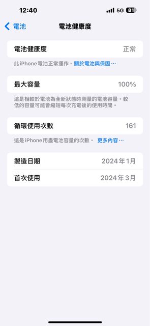 物品狀況:無維修紀錄,機身良好,外觀無損,ios18.1,電池健康度100%、循環使用次