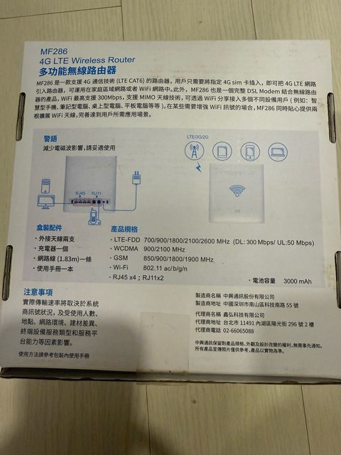 標題[賣/新北/皆可] ZTE MF286 4G LTE 無線分享器