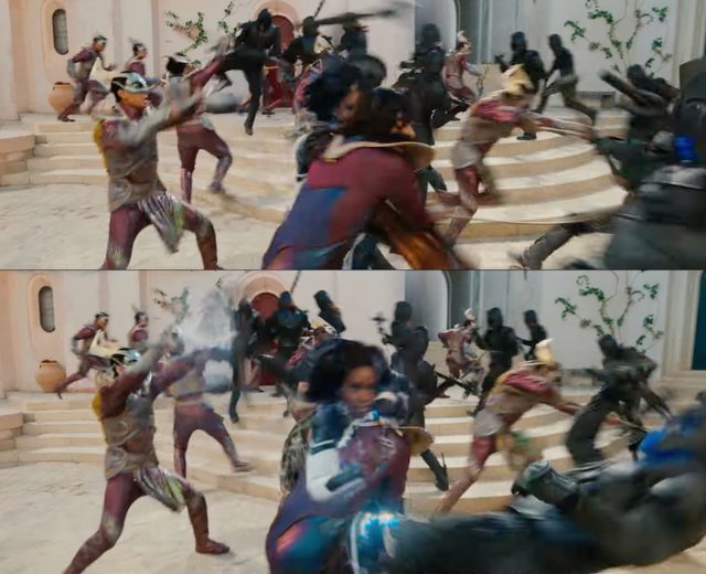 《驚奇隊長》中秒殺全場及《復仇者聯盟 4:終局之戰》中跟薩諾斯拳頭單挑的驚奇隊長