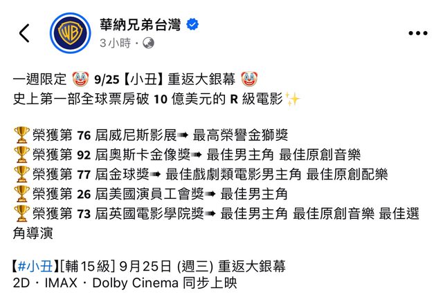 轉自 華納兄弟台灣 FB