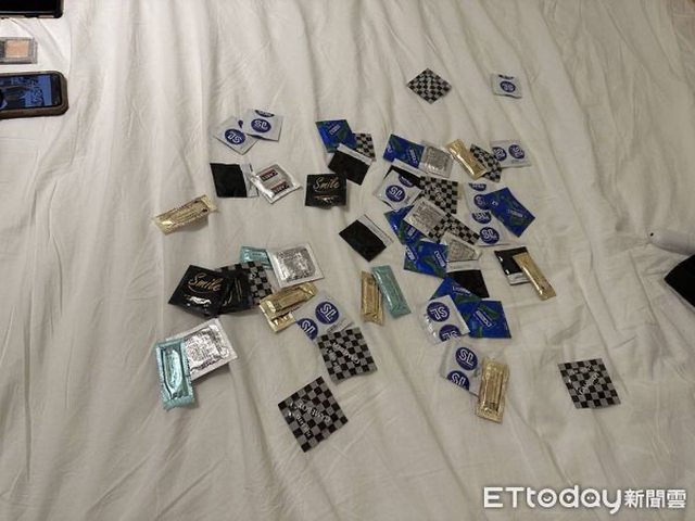▲員警查獲多達447個保險套。(圖/記者林東良翻攝)