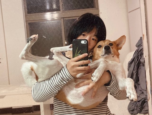 (第二張是帶家犬散步途中強迫他合影,人有點狼狽)