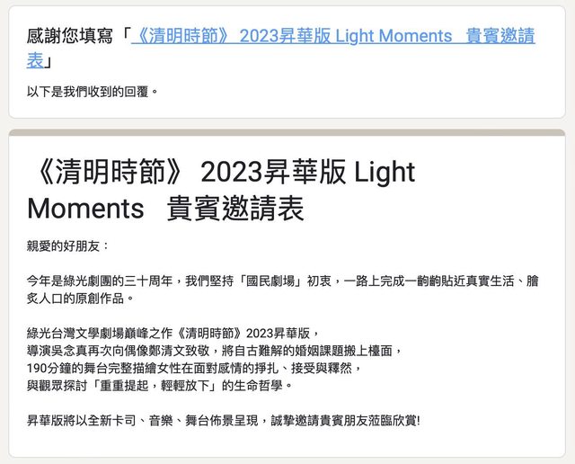 早上收到一個劇團邀約