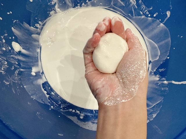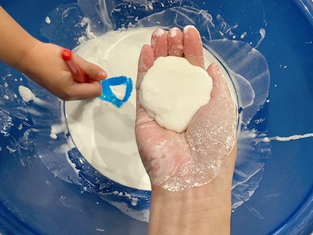 只需要一個盆子、太白粉、水就可以玩