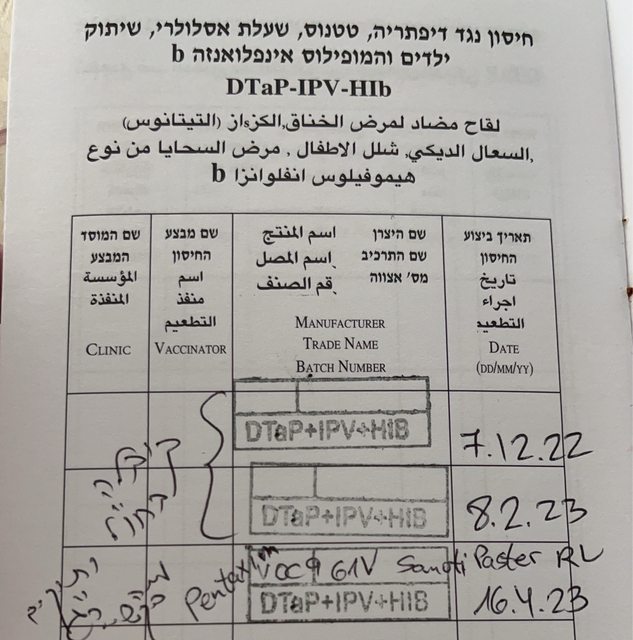 2023年2月打完小孩四個月疫苗後出國,2023年10月回國接著打一歲疫苗、流感、腸病毒