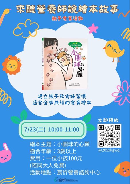 歡迎大家帶孩子一起來聽營養師說故事吧~