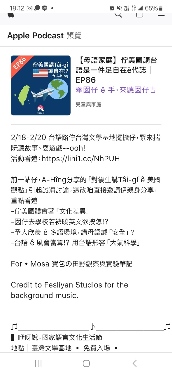 → suction : 可以聽這一集 也是海外 爸爸跟小孩講台語 07/22 18:13
